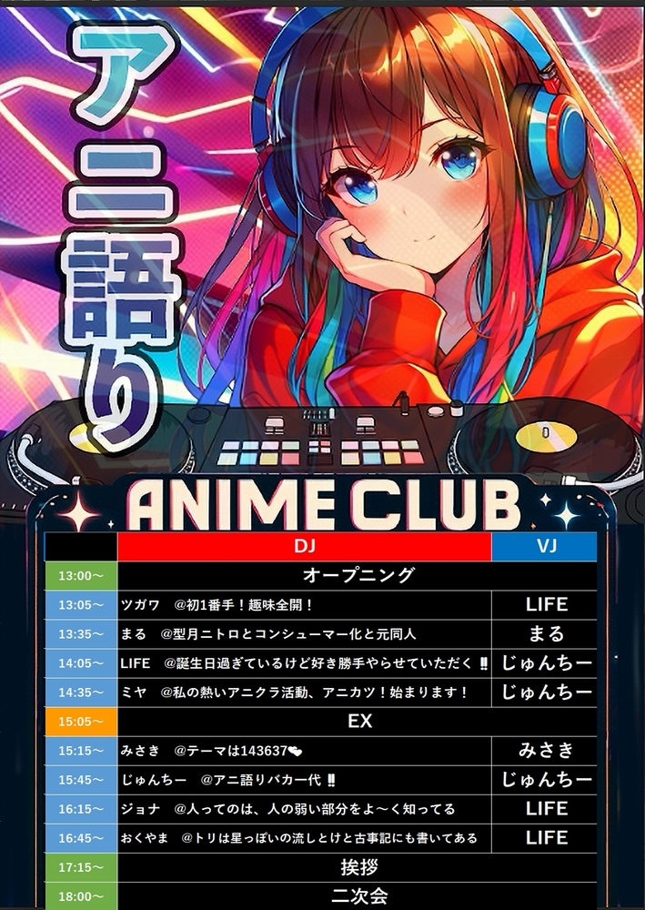 1日中アニソン聞いて、喋って、友達たくさん作っちゃいましょう👍