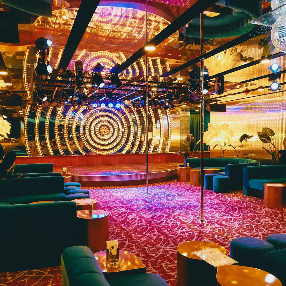 昭和のバブリーでゴージャスな内装が特徴的で、