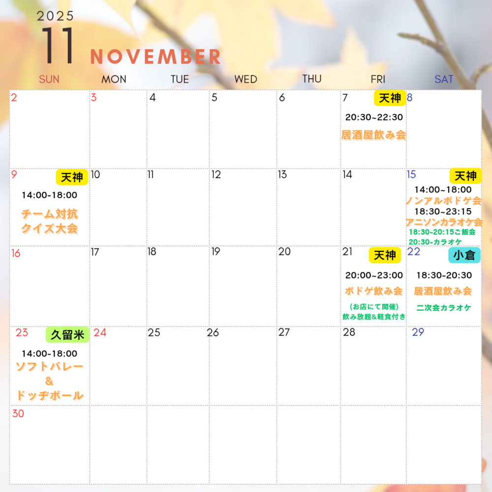 天神駅近くの会場で、11/15(土)14時スタート!