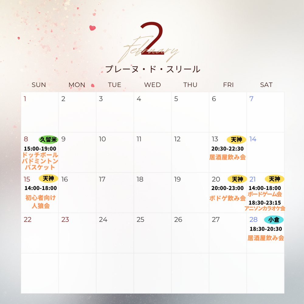 福岡で活動している友達作りサークル『Plein de sourires(プレーヌ・ド・スリール)』と申します!