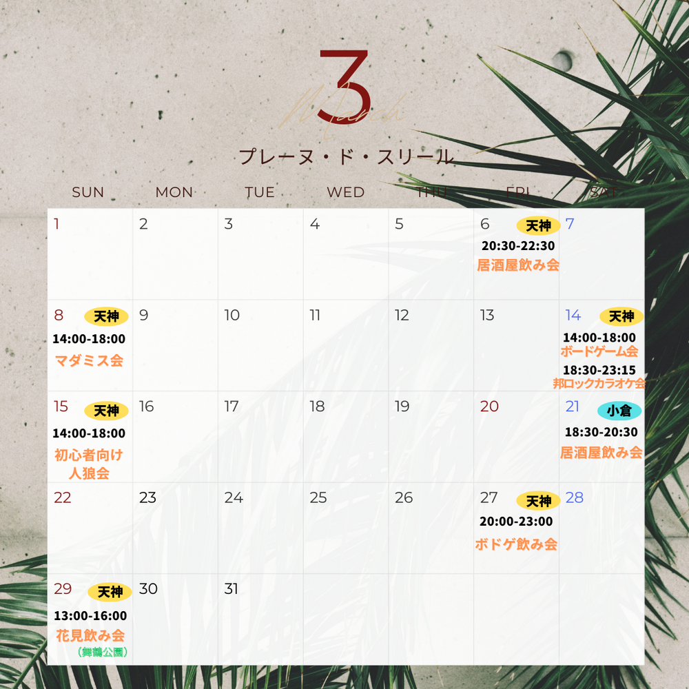 天神駅近くの会場で3/8(日)14時スタート!