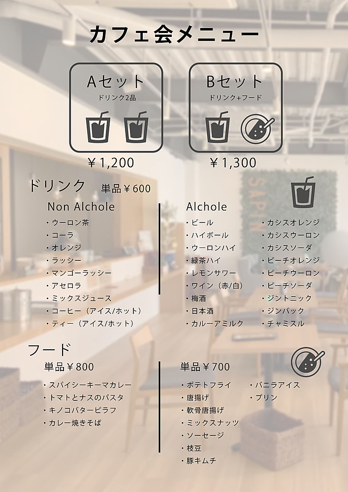※別途ご飲食の代金はご用意ください。セットまたは単品2品以上のオーダーをお願いします。