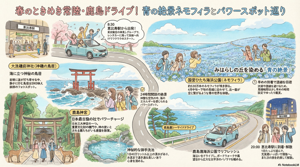 🔶春の鹿島ドライブ!青の絶景ネモフィラ ひたち海浜公園・磯前神社・鹿島神宮