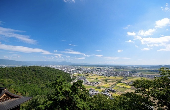 天空のパワースポット: 勝利の神を祀る「太郎坊宮」が中腹にあり、巨大な岩の隙間を通る夫婦岩は圧巻の迫力です。
