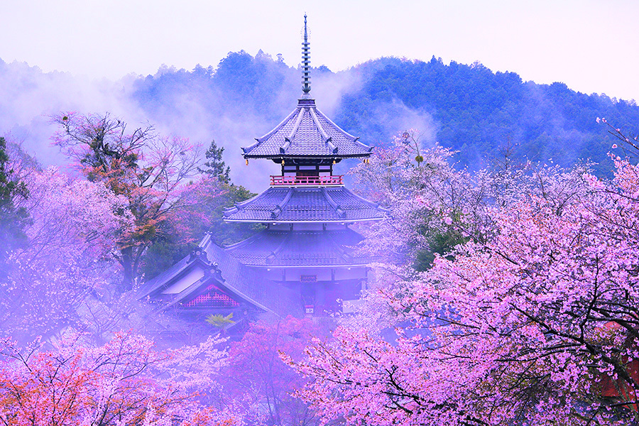 4月上旬の吉野山では、千本桜が山を埋め尽くします🌸