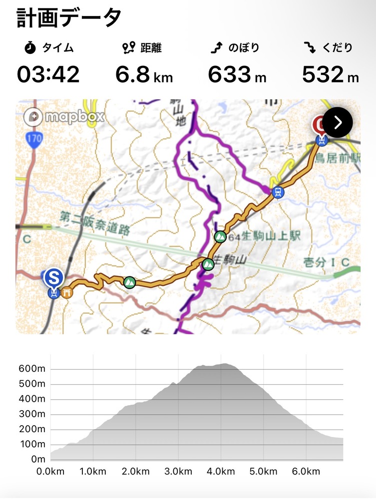登山コース  生駒山(標高640m)