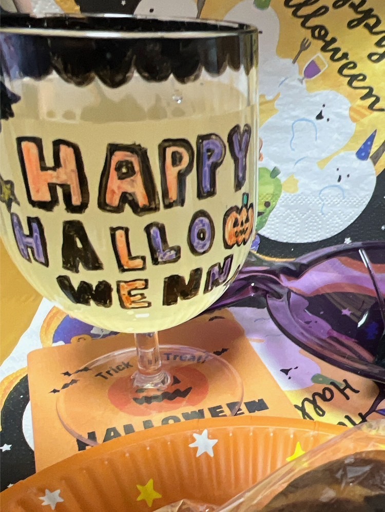 グラスに楽しくお絵描きして、ハロウィンパーティーを楽しみましょう🥂🎃✨