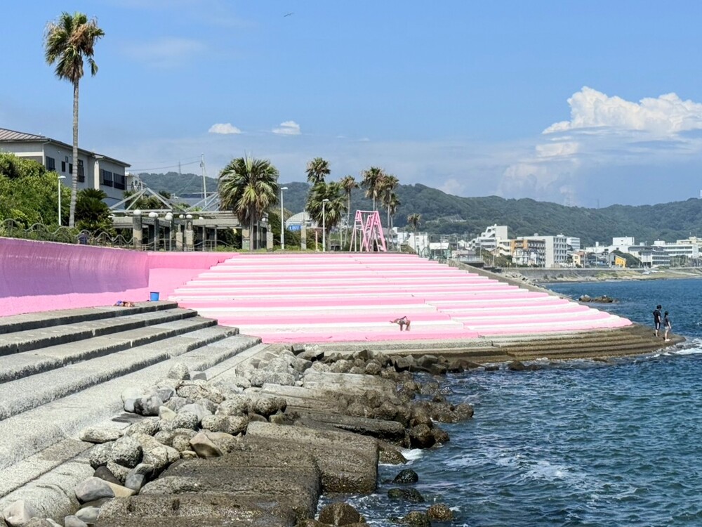 2024年に誕生したばかりのポップで可愛いフォトスポット!ピンクの巨大オブジェが並ぶ海辺で色んな写真を撮りましょう🩷