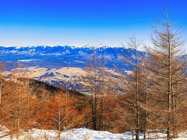 晴天率の高い入笠山からは八ヶ岳の絶景をはじめ、アルプスの名峰が見渡せる絶好のロケーションが広がります。これまでの疲れも吹き飛ぶ絶景ポイントです。雪のある季節には絶対に行きたい山のひとつです!