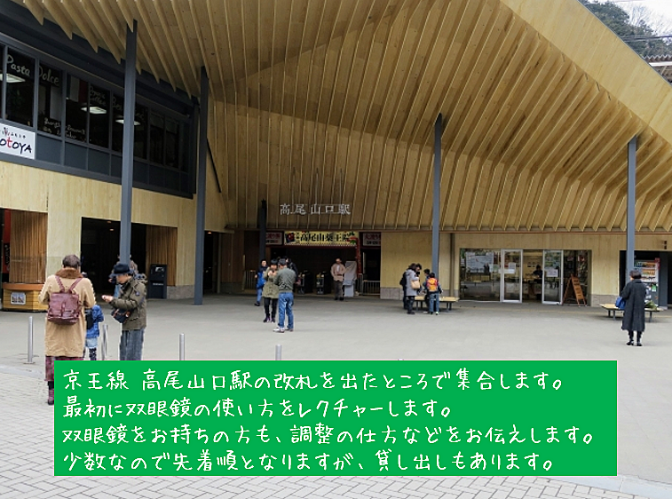 双眼鏡をお持ちの方も、調整の仕方などをお伝えします。少数なので先着順となりますが、貸し出しもあります。