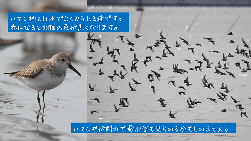 ・長靴orサンダルorスニーカー(長靴やサンダルはなくてもよいですが、干潟を歩くので、汚れてもよい靴でお願いします。長靴やサンダルのように濡れてもよいものだと、より近くで鳥を観察できます)