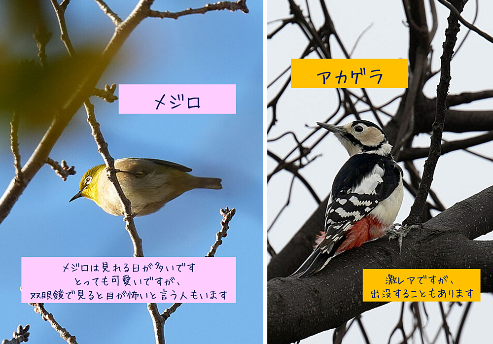 季節や条件によりますが、10-30種程度の鳥が観察できます。