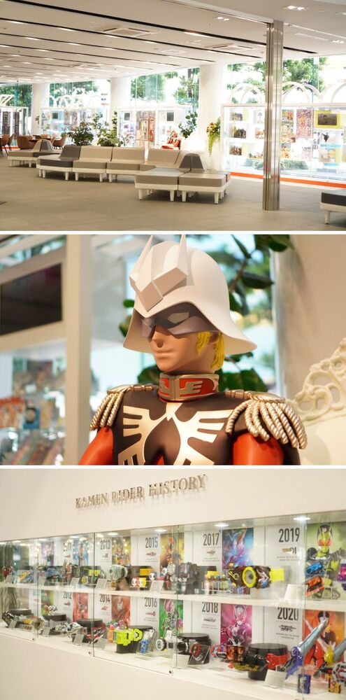 駒形にある株式会社バンダイの本社ビル。1、2階の展示スペースは、誰でも無料で見学できると人気です。『機動戦士ガンダム』のシャア・アズナブルやトーマス・エジソンにも出会える?! 魂をこめるモノづくりで世界中の人をも魅了しつづけるおもちゃメーカーの歴史は、きっと訪れる人たちの幸せな記憶を蘇らせてくれますよ。