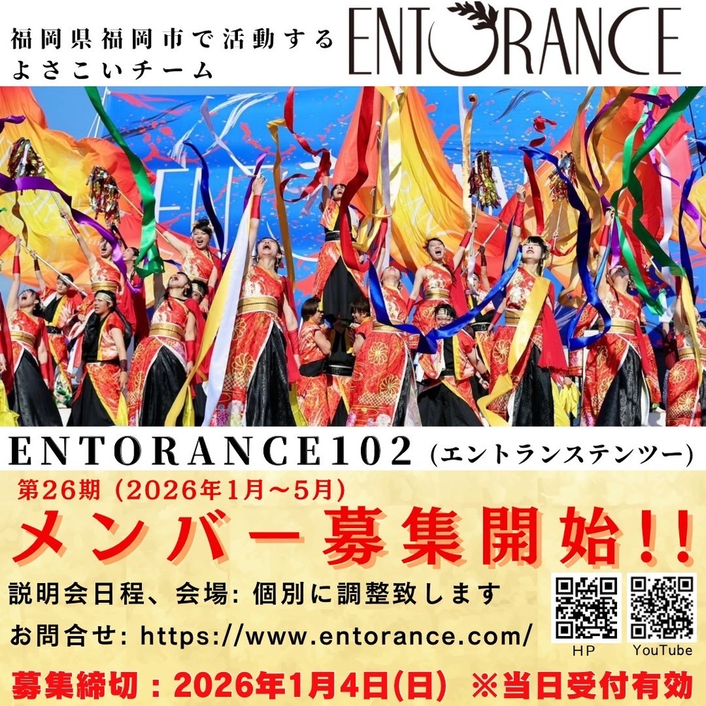 福岡市を中心に活動してるよさこいチーム「ENTORANCE102」です!