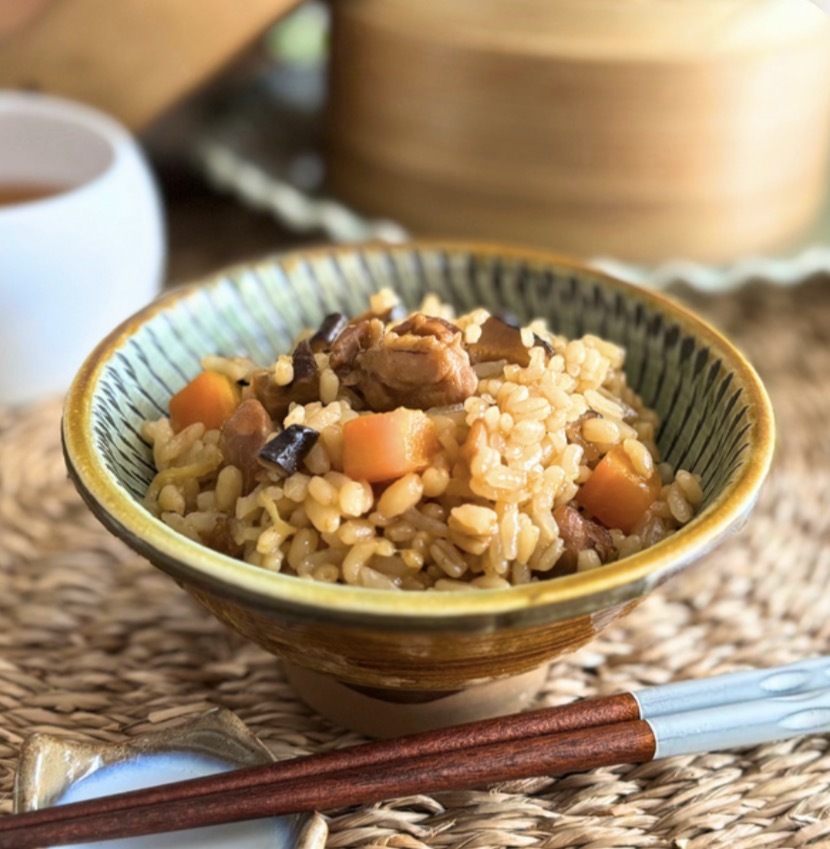 (デトックスおこわ、キノコサラダ、鶏胸肉の玄米糀漬け)