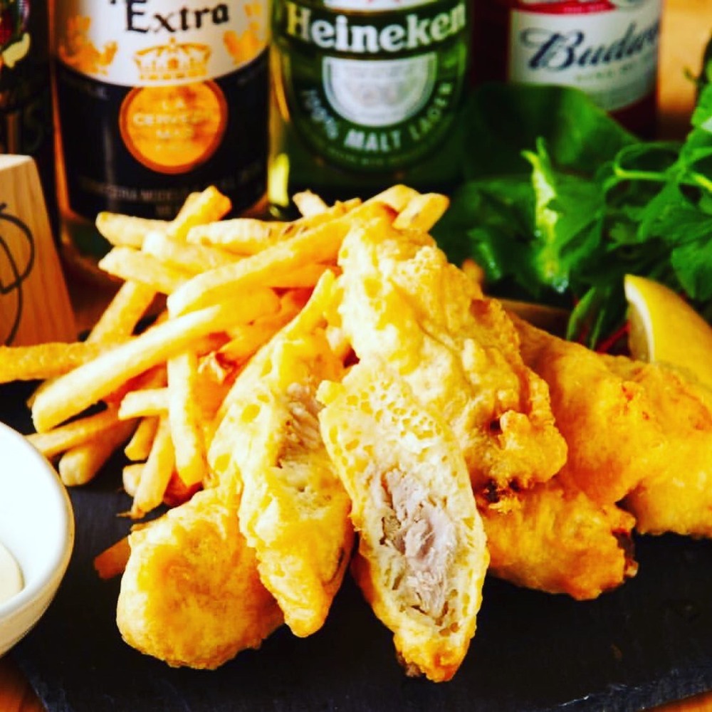 看板メニューのフィッシュアンドチップスはサクサクで食べやすく、とにかく美味しいので、一度味わってほしい1品です^^;