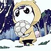 内庭から松原へ長く続く築地塀に、庭園に縁のある影絵たちが登場します。