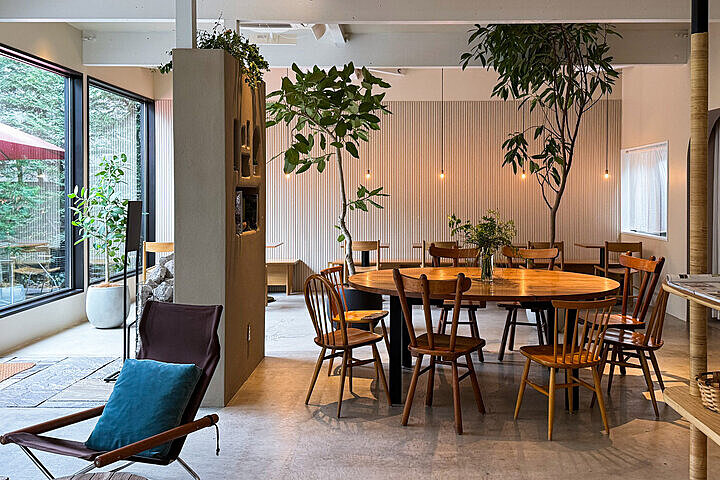 木のぬくもりが感じられるシンプルで温かみのある店内は、天井が高く開放感にあふれた空間が広がっています。