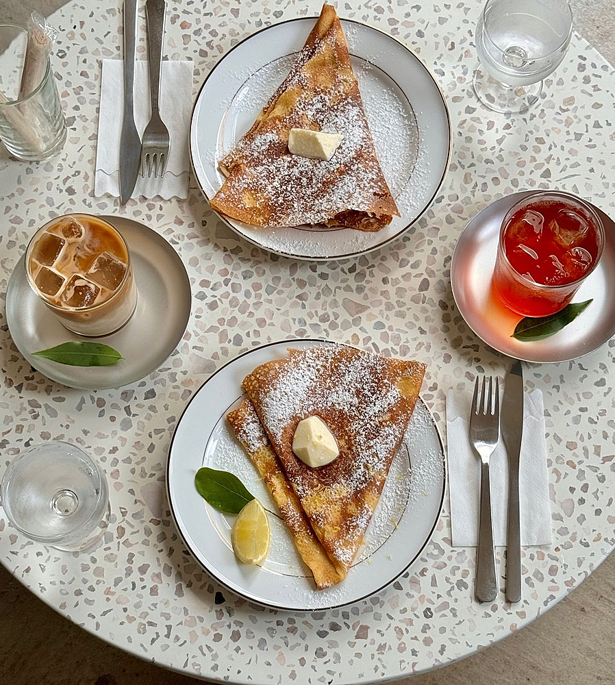 クレープは薫り高いバターや砂糖の食感が楽しめるスイーツ系と、生ハムやチーズの塩味がアクセントのお食事系がそろい、初めて来店される方はまず生地の食感や味わいをしっかりと楽しめる「シュガーバター」がおすすめです🧈