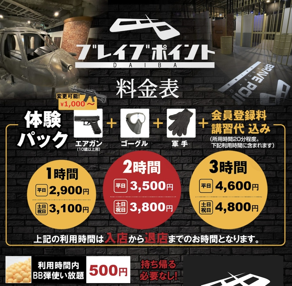 ②体験パック(2時間) 3,800円+BB弾使いたい放題500円(合計4,300円)