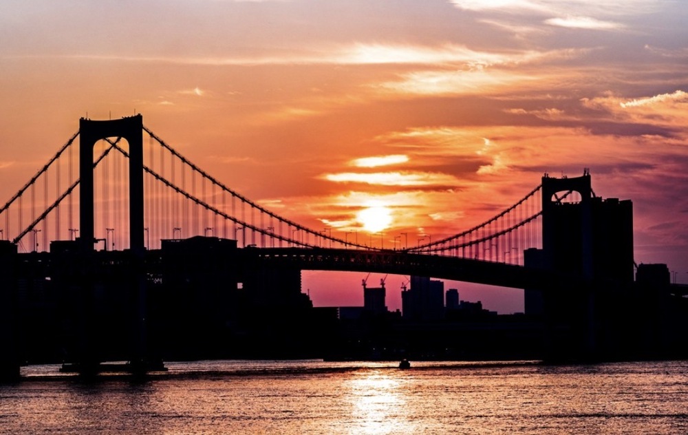 芝浦地区と臨海副都心を、長さ約 800mで結ぶ首都最大級の橋。東京のシンボル的存在で、東京湾に美しいシルエットを与えています。上層は首都高速、下層は一般道、遊歩道、新交通ゆりかもめが走る二重構造。1.7km(徒歩20~30分)の遊歩道から、東京タワーやお台場の景色を楽しめます。