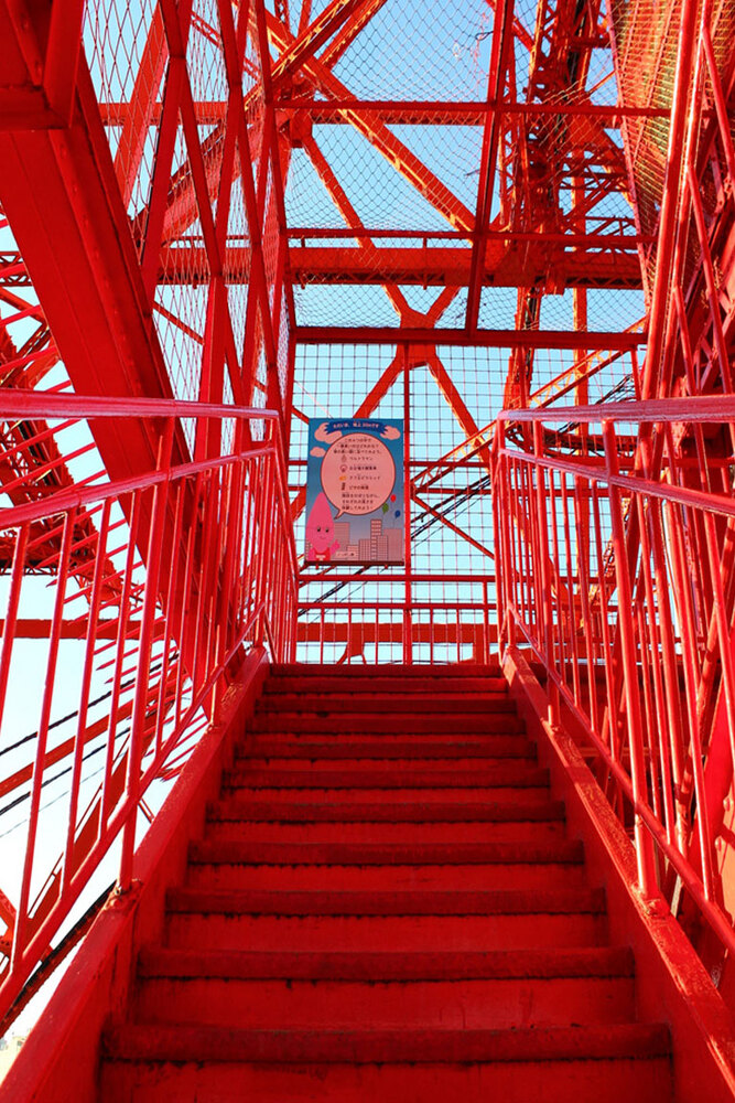 東京タワーでは 塔脚下のビル「フットタウン」の屋上から高さ150mまで続く、約600段のオープンエア外階段を開放しています!