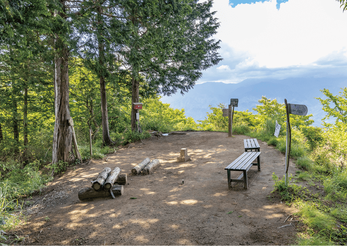 百蔵山で生まれた桃太郎が、上野原市の「犬目」で犬、大月市の「猿橋」で猿、「鳥沢」でキジを家来にして、九鬼山に棲む鬼を退治に来たという「桃太郎伝説」が伝わる山。池ノ山コースの尾根では都留市街と富士山に伸びる中央道、リニア実験線が展望でき、運がよければリニアの走行も見ることができる。山頂手前の天狗岩からは絶景の富士山が眺められるのでぜひ立ち寄ってみよう。山頂でも富士山が望めるが、どちらかと言うと北側の展望が開けており百蔵山、扇山、高川山など大月、都留の山々を見渡せる。
