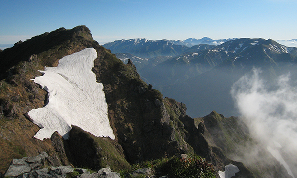 また、歩いて来た稜線や周囲の荒々しい岩壁なども見渡せます。2つの峰に登ることで、1日に2度もこの感動を味わうことができる、とってもお得な山なのです。