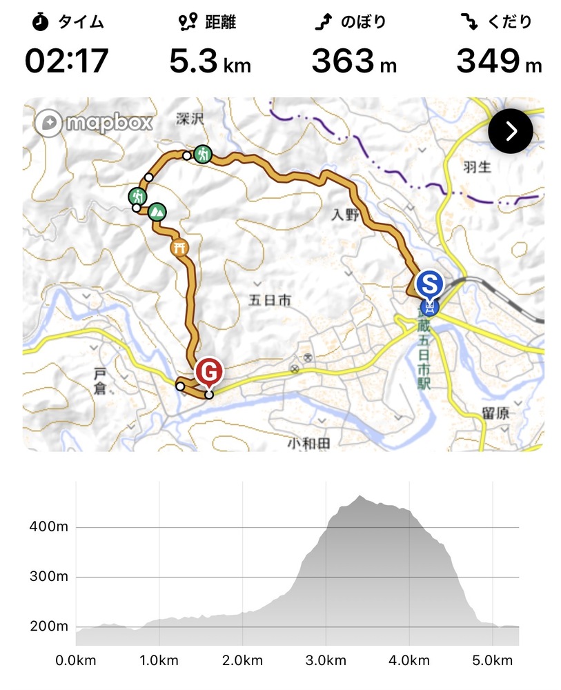 ・往路の距離:約6km程度