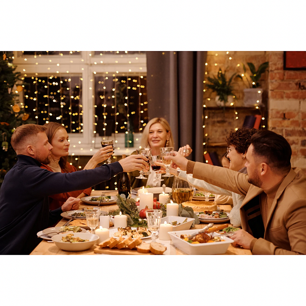 みんなで食事をしながらクリスマスを一緒に