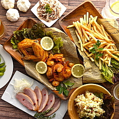お料理も人気のお肉が大集合♪話題のお肉がリーズナブルにお楽しみいただけます。特選牛カルビや熟成豚カルビ、タンドリーチキンを始め、人気のお肉♪海鮮やお野菜も鮮度抜群で大人気です!冷えたビールを堪能しながら、BBQを楽しもう!ビアガーデンの雰囲気を楽しめます。大人が楽しめるお店です!♪♪■