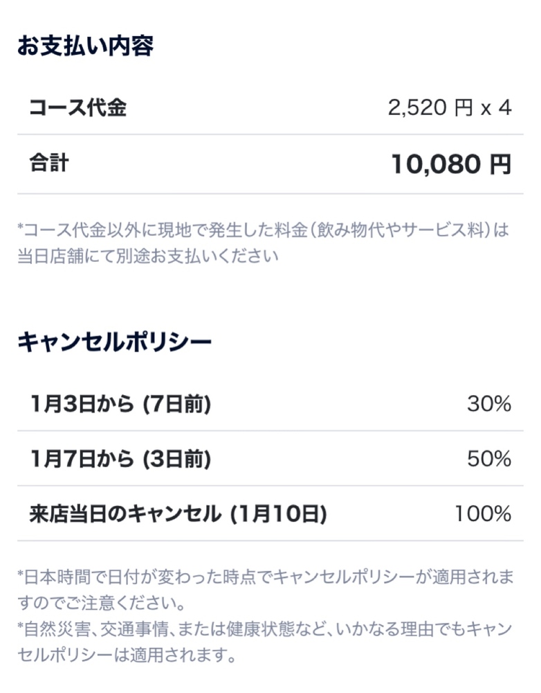 上記日程からキャンセル後に欠員補充できなかった場合はコース料金を請求させていただきます。