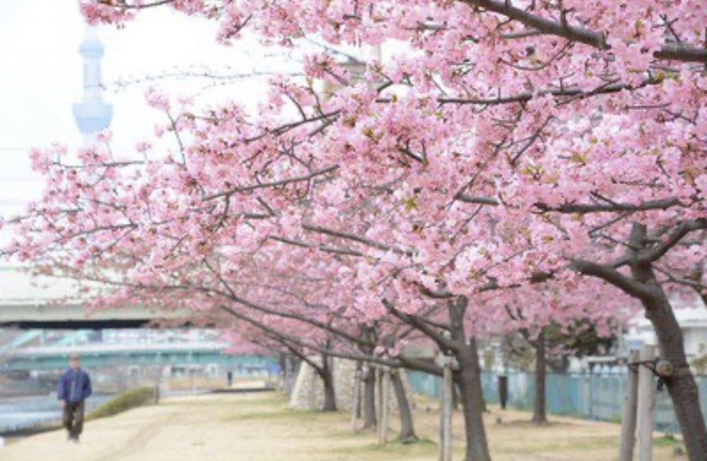江戸川区にある川沿いの桜スポットで、