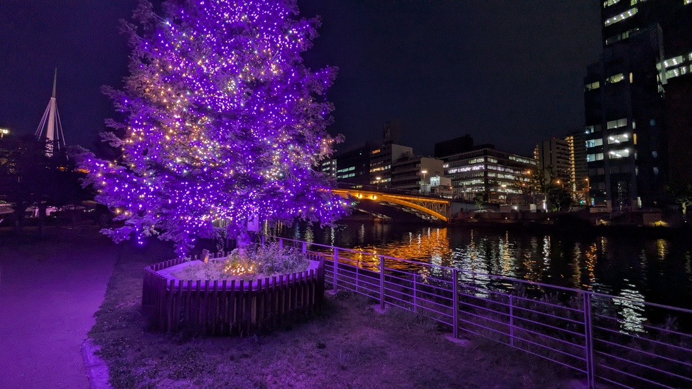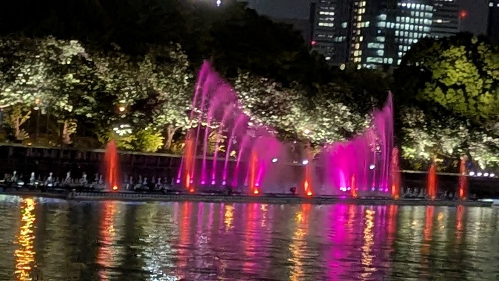 途中、堂島の展望室、御堂筋でのイルミネーション、天満橋の噴水ショーetc…