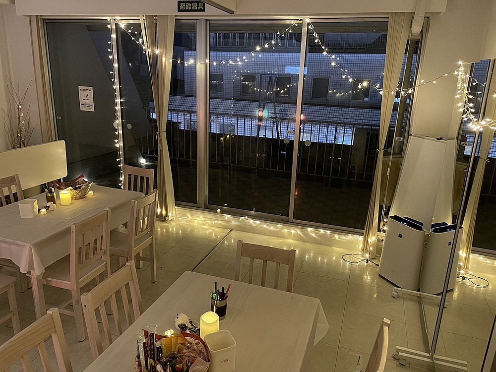 イルミネーションやキャンドルで、会場のレンタルスペースはめっちゃオシャレになっています。