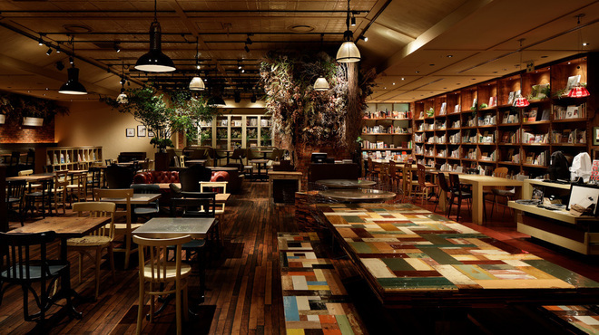 天井の高い広々とした店内には、壁一面に並ぶ本棚があり、自由に手に取って読みながら食事やドリンクを楽しめます。ニューヨーク・ブルックリンをイメージしたインテリアは落ち着きがあり、昼はランチやカフェ利用、夜はクラフトビールやカクテルとともに賑やかな時間を過ごせるのも魅力🍺