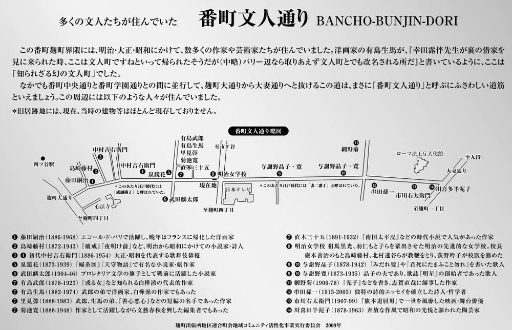 番町は江戸時代初期、 徳川家康 が城(江戸城)の周囲の守りを固めるために、将軍直属の旗本「大番組(おおばんぐみ)」をこの地に住まわせたのが始まりと言われています。1番町、3番町にはその名残があります。文人通りのあたりには文人がたくさん住んでいました。明治期以降、武家屋敷跡地には華族・官僚の邸宅が建ち、さらに多くの大使館・ミッション系学校・文化施設が設置され、国際性と格式を備えた街になりました。以上のような街の成り立ちがわかるような散歩コースになっています!😺