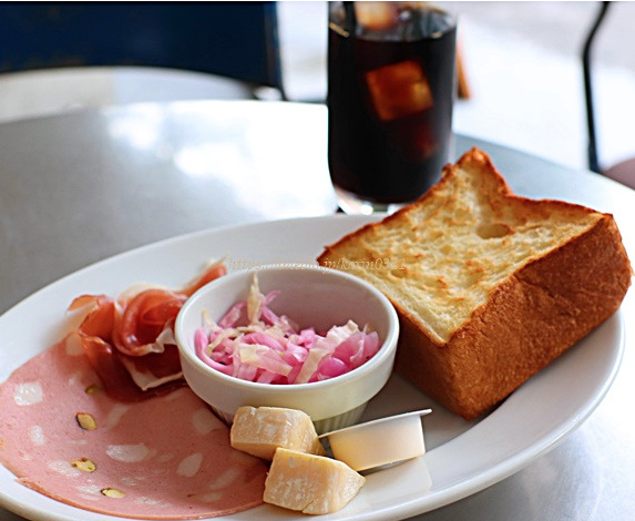 看板食パン「ムー」の唯一無二の食感:バターをふんだんに使用したキューブ型の食パン「ムー」は、手でちぎった瞬間にその柔らかさに驚かされます。テイクアウトも可能ですが、午前中には売り切れてしまうことも多い逸品です。🍞