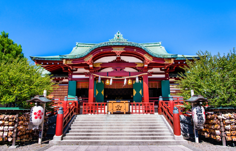 学問の神様を祀り、春には藤の花とスカイツリーを同時に見上げる絶景が楽しめる下町の名社。