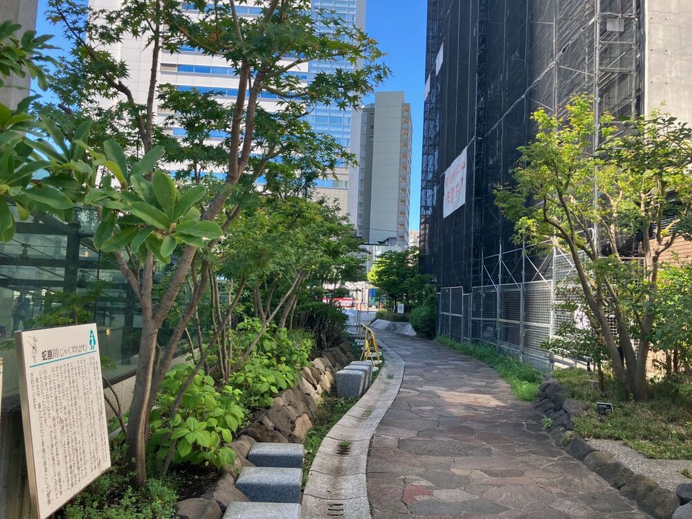 スタートは「駒沢橋跡」から。いまは水も流れていないのに橋の名だけが残っているこの場所は、かつての川や地形の痕跡を感じさせるポイントです。街の中にはこうした“消えた風景”が意外と多く残っています。