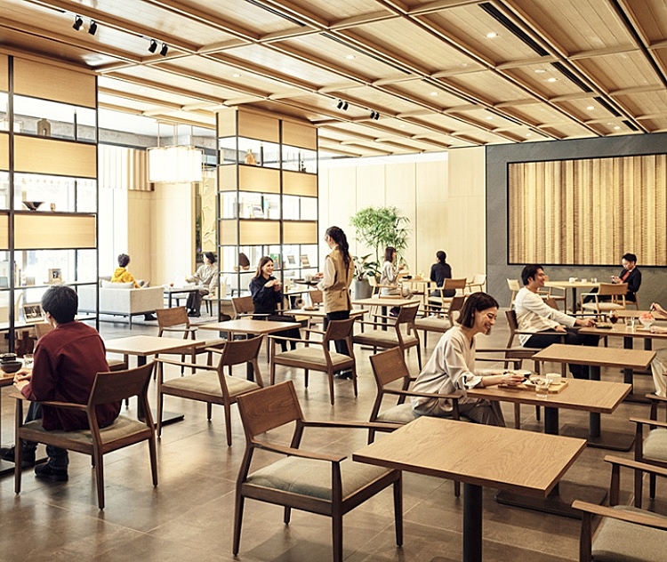 トヨタ自動車が東京ミッドタウン日比谷内にリニューアルオープンしたカフェラウンジです。