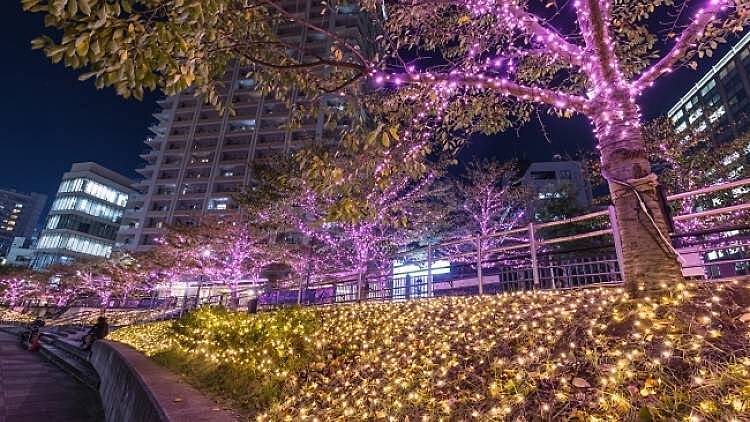 35万個の桜色LEDで品川区立五反田ふれあい水辺広場と目黒川両岸の歩道をイルミネーション🌺🌺