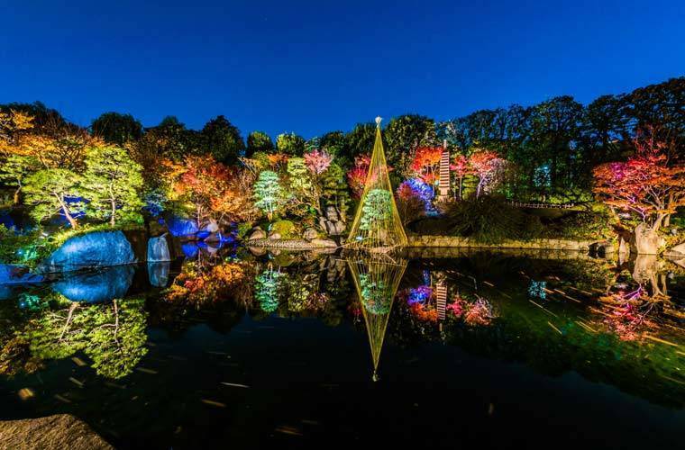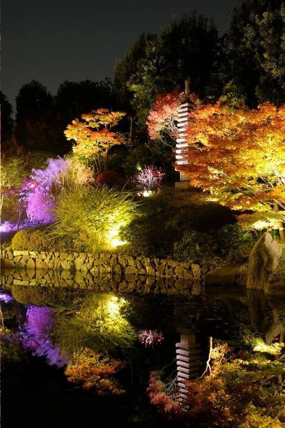 秋には様々なモミジが赤や黄色に色づき、ライトアップ時には紅葉が池の水面に映え、情緒を感じることができます🎀🎀🎀
