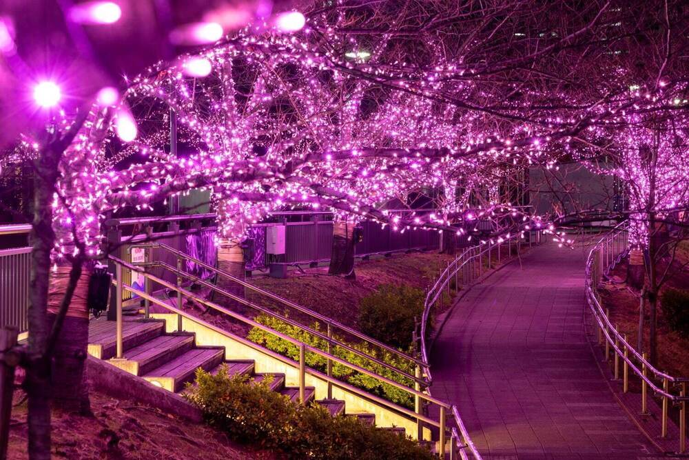 お花見スポットとして人気の目黒川沿いが、まるで”冬の桜”が咲いているかのような華やかな空間となります🐽🐽