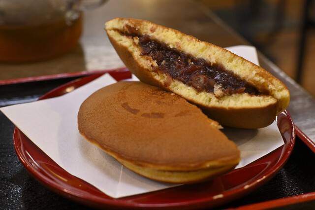 店内は世代を問わずにぎわいがあり、お土産にも喜ばれる特大サイズのどら焼きが評判です〜🐽🐽
