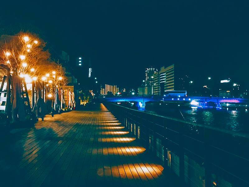 程よい明るさのフットライトが点灯された遊歩道は雰囲気もよく夜散歩にもうってつけ🌸🌸