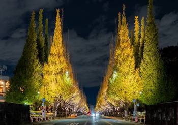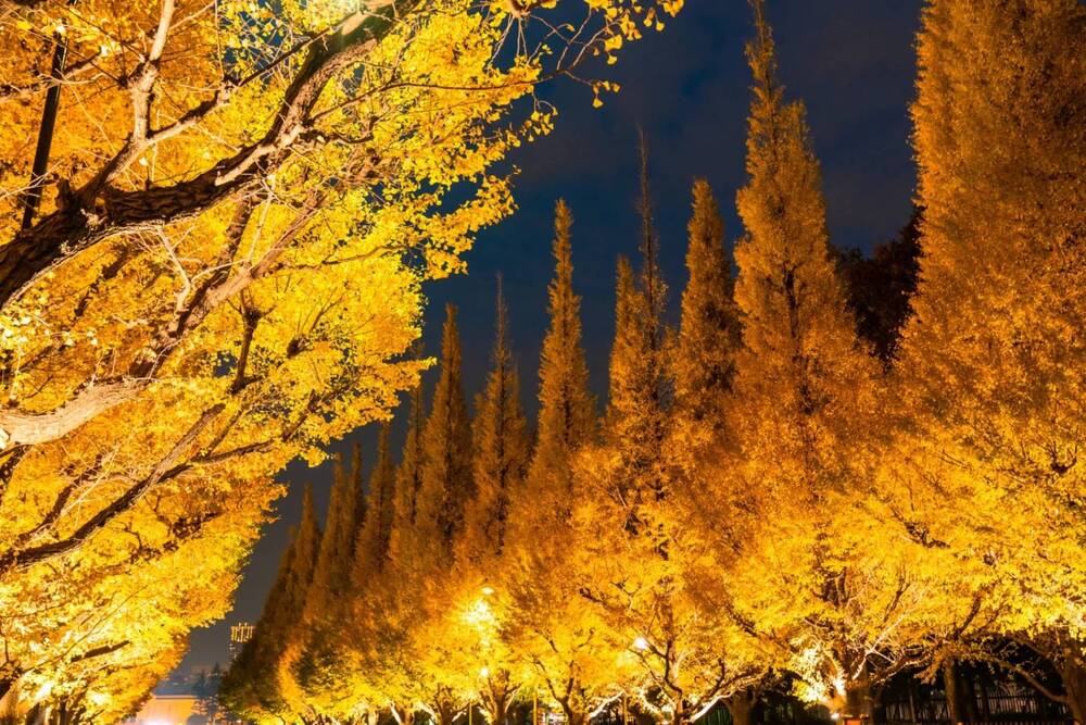 紅葉シーズンにはライトアップイベントが開催され、暖かい光が、一つ一つの銀杏の葉を照らし出し、まるで宝石が並んでいるように輝きます🌸🌸