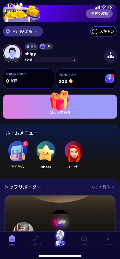 サポーター役がシンガー役へ送る投げ銭(Cheer)によって、ステージの映像、照明、スモークなどの演出が豪華に変化するのを体感し楽しむ。