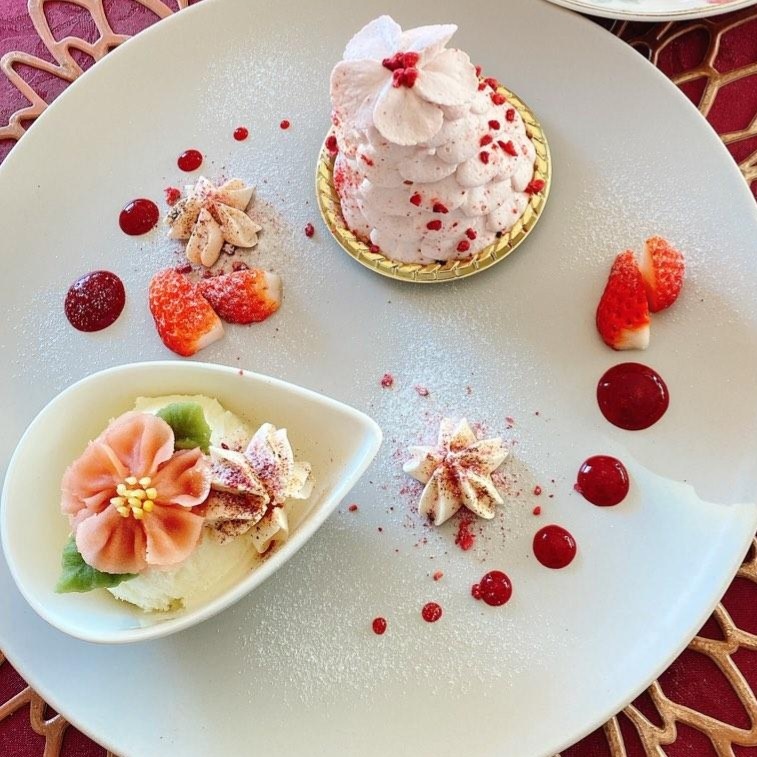 完成後はCher Angesさんの可愛く盛り付けされたスイーツセットをいただきながら