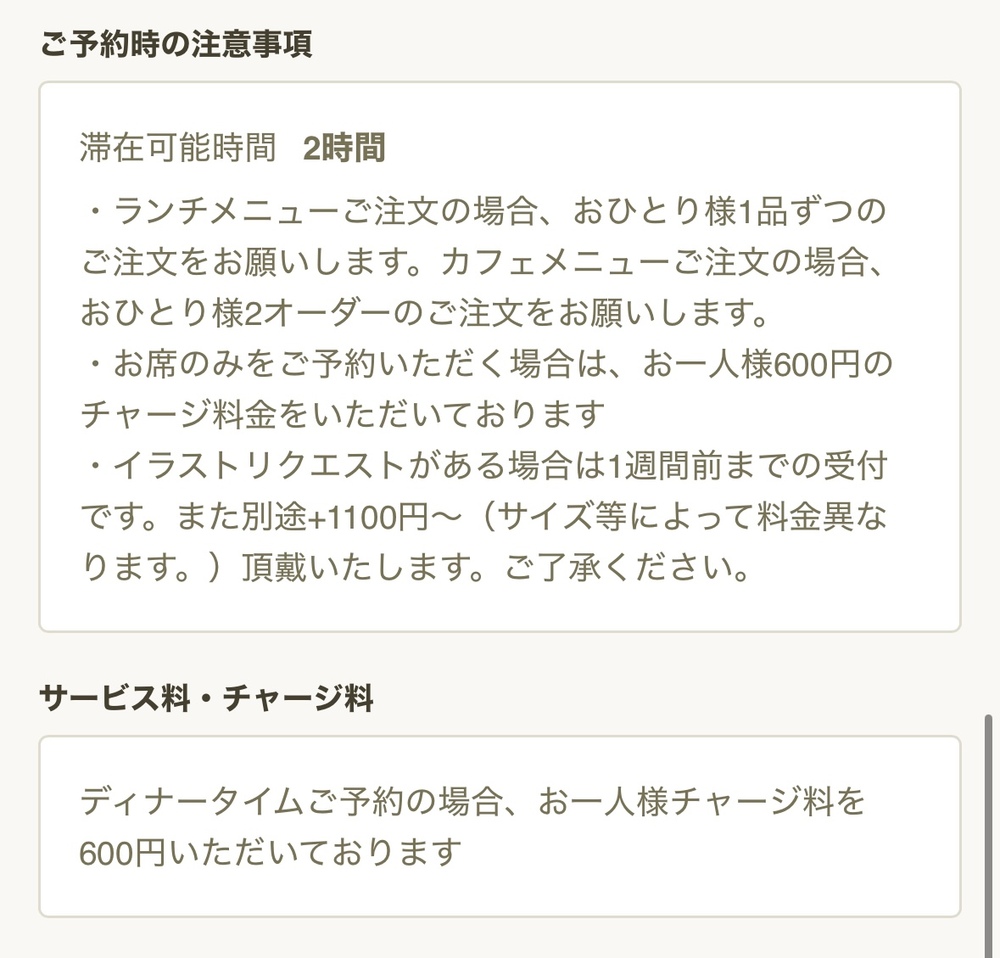 ※チャージ料やオーダーについては2枚目の画像をご確認お願いします。